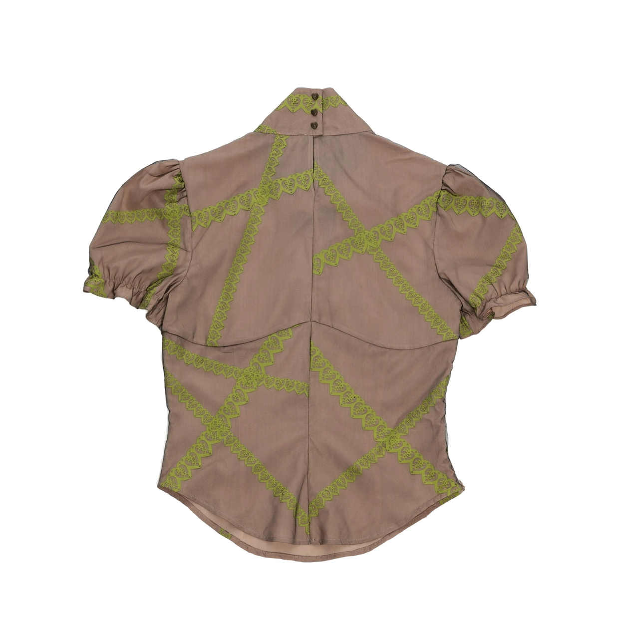 A 2022 LVMH Prize semi-finalist, she combines embroidery and glass beads with printed fabrics, creating unique silhouettes.